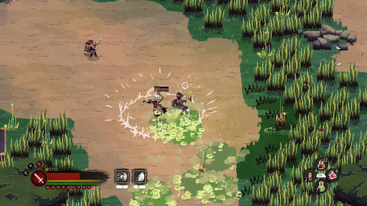 A captivating blend of the low fantasy setting and achingly detailed pixel art makes Dewr’s decrepit world croak with breathtaking life as Thorn carves his path through it. Every second that passes in No Place for Bravery pulses with an immersive, intense atmosphere that you’ll feel in your veins.